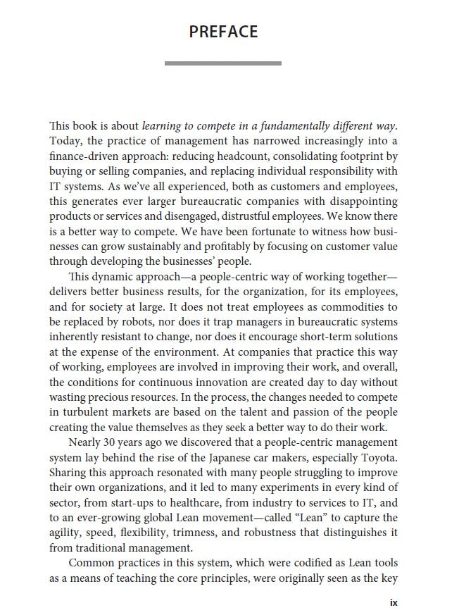 Dit boek gaat over leren concurreren op een fundamenteel andere manier. Management wordt steeds meer een puur door financiële overwegingen ingegeven discipline; alles draait om inkrimping van het personeelsbestand, consolidatie van de voetafdruk door aan- of verkoop van bedrijven en vervanging van individuele verantwoordelijkheid door IT-systemen.